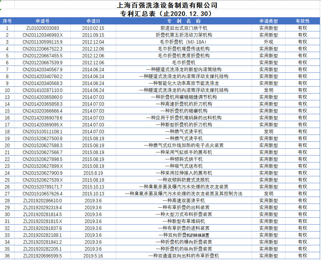 目前,我公司的產(chǎn)品,如隧道式洗衣機及相關(guān)機組,槽式熨平機、展布機、送布機、毛巾折疊機,布草折疊機,前進后出式烘干機及高脫水率洗脫機、燃氣式烘干機、燃氣式熨平機在市場上獲得了越來越多的客戶的認可。敬業(yè)、鉆研、真誠是我們百強公司全體員工的基本素質(zhì)要求,努力使每一臺洗滌設(shè)備成為優(yōu)質(zhì)合格的產(chǎn)品,是百強企業(yè)人的目標。百強不斷進取,多方面學(xué)習(xí),改進提升產(chǎn)品性能,結(jié)合多年的加工制造經(jīng)驗,并采購符合國家或行業(yè)相關(guān)標準的配件,以確保機器結(jié)構(gòu)性能穩(wěn)定、經(jīng)久耐用、造型美觀大氣。在發(fā)展的過程中,百強先后通過了ISO9001質(zhì)量管理體系認證,ISO14001環(huán)境管理體系認證,ISO45001職業(yè)健康安全管理體系認證、產(chǎn)品質(zhì)量CE認證,成為了為數(shù)不多的中國輕工協(xié)會洗滌裝備分會理事單位,中國商業(yè)聯(lián)合會理事單位和中國洗滌機械行業(yè)十強企業(yè),上海市高新技術(shù)企業(yè)。以質(zhì)取信、以信取人是百強人永遠不變的精神理念。