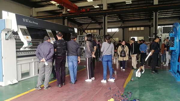 此次,上海百?gòu)?qiáng)洗滌設(shè)備制造有限公司由于特殊原因沒(méi)有在洗滌展設(shè)立專門的展位,而是以一種特殊的模式參與中國(guó)洗滌展。這種方式就是以廠為展,在廠區(qū)內(nèi)設(shè)立設(shè)備展位,如130kg傾斜式洗脫機(jī)、節(jié)能烘干機(jī)、高速燙平機(jī)、高速折疊機(jī)、四工位展布機(jī)等等,還有一臺(tái)燃?xì)鉅C平機(jī)(作為本次展會(huì)的隱藏設(shè)備)。