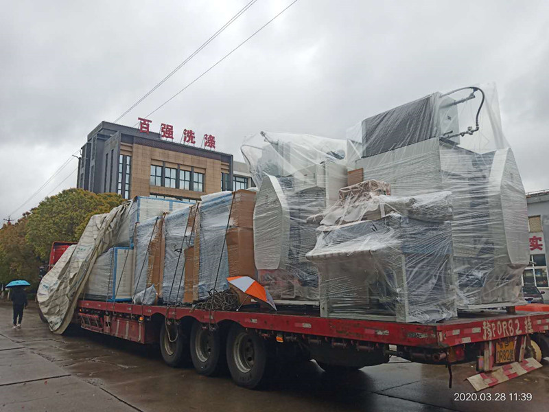 據悉,3月28日,百強洗滌設備發往浙江的三臺100公斤的洗脫機(工業洗衣機)、2臺100公斤的烘干機、一臺五輥燙平機,和一臺高速折疊機現在已經順利抵達浙江洗滌廠內,目前正在安裝階段。