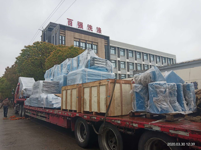 百強洗滌設備在四川受到了眾多客戶的認可,繼前期的洗滌設備發貨之后,今日百強洗滌設備又發貨四川成都125貫通式烘干機三臺、送布機一臺另加輸送線一條。
